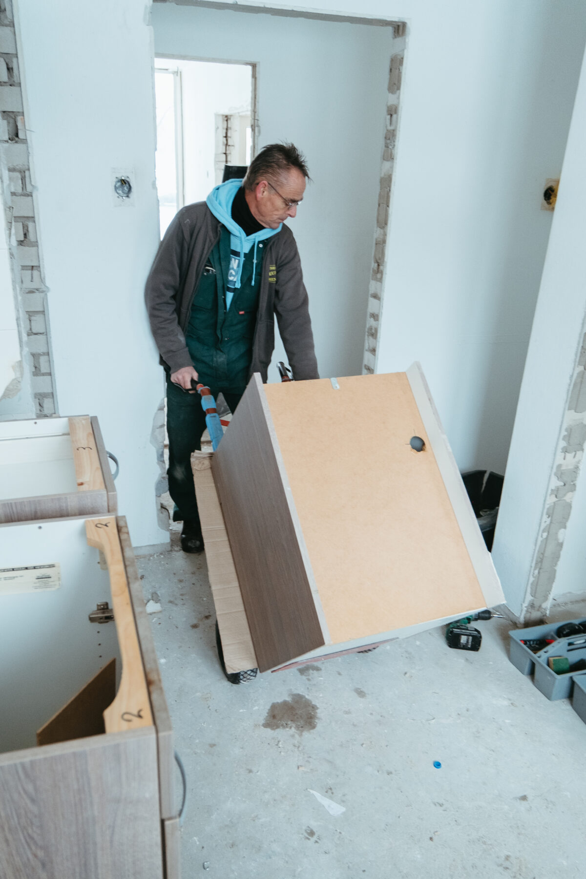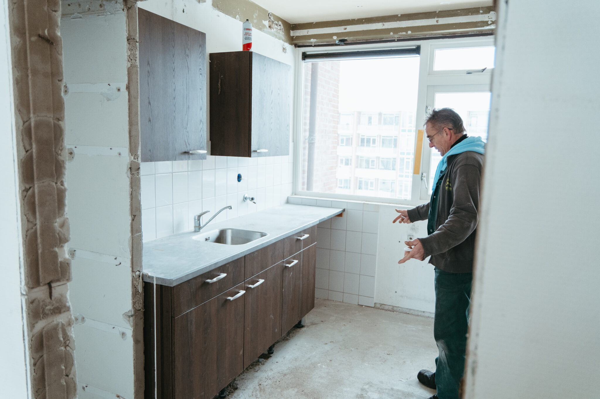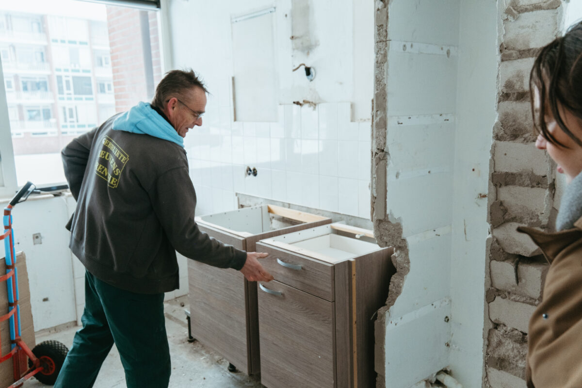 Een deel van de keukenblokken uit de eerste flat krijgt een nieuw leven op een andere plek. Van camperbusjes tot werkplaatsen: zo krijgen materialen opnieuw waarde.