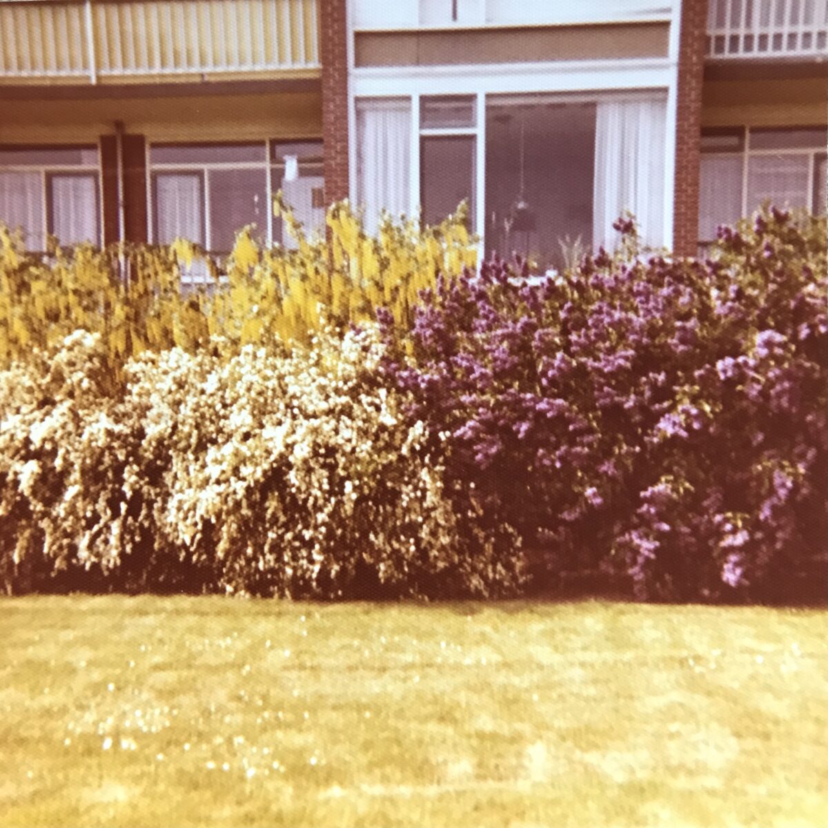 We bouwden hutten in de struiken rondom het grasveld. Struiken die in het voorjaar explodeerden in wolken van paars, geel en wit: seringen, gouden regen, rozenbottel. De rozenbottels gingen bij de buurvrouw in de taart. Zorgvuldig ontdaan van hun pitjes, want die kriebelden heel erg op je huid. In de winter maakten we sneeuwpoppen en na het maaien van het gras waren we uren zoet met bouwen en spelen.