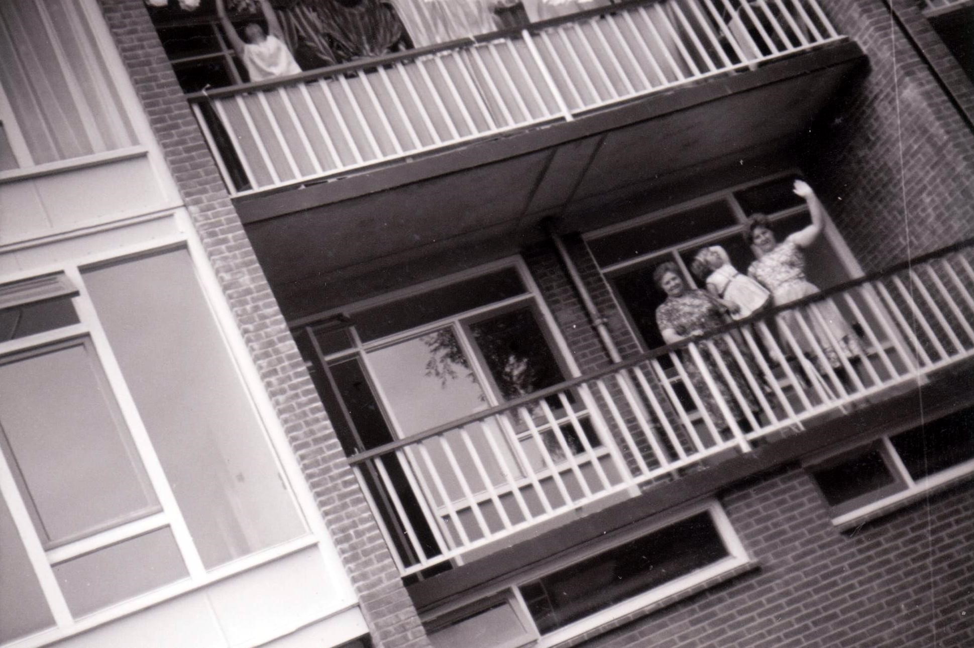 Van een neef van mijn moeder kreeg ik nog niet zo lang geleden deze zwart-witfoto uit 1965. Op de foto staan mijn oma, mijn moeder en ik op het balkon van onze nieuwe flat op de eerste verdieping aan de Spaanskamp 41 in Hardenberg.